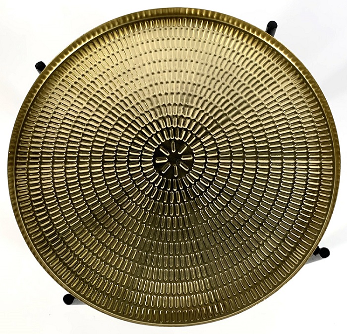Bijzettafel gemaakt van metaal. Deze tafel heeft een goud kleurig tafelblad en zwart onderstel. De bijzettafel is 50 cm hoog en heeft een diameter van 40,5 cm. Deze tafel is goed te combineren met andere bijzettafels.