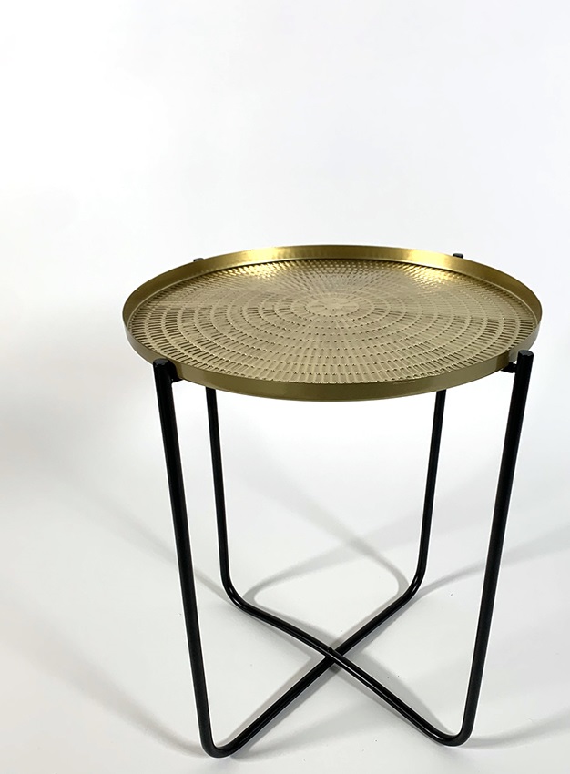 Bijzettafel goud tafelblad zwart onderstel 50 cm hoog