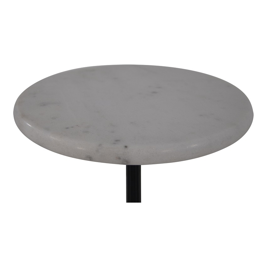 Deze bijzettafel gemaakt van marmer met een gietijzeren tafelonderstel is een elegant en duurzaam meubelstuk dat een luxe uitstraling aan je interieur geeft. Het marmeren tafelblad heeft een diameter van 30 cm, is 60 cm hoog, is glanzend en heeft een natuurlijke tekening met aders, wat elk stuk uniek maakt. De combinatie van marmer en gietijzer zorgt voor een balans tussen elegantie en kracht, waardoor de tafel een blikvanger is in elke ruimte.