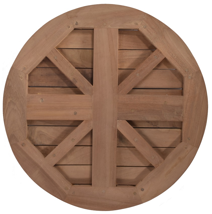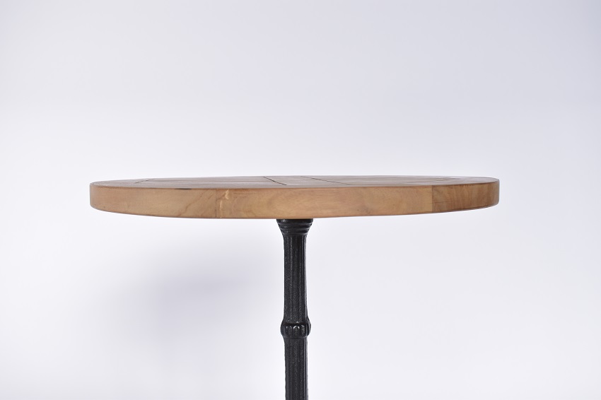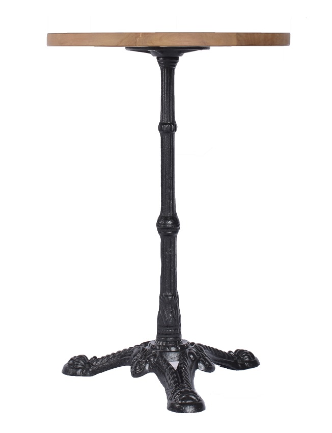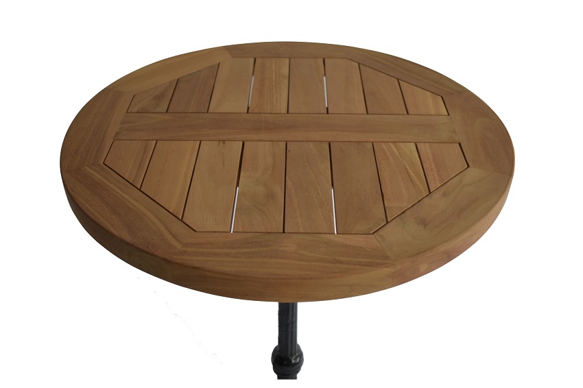 Mooie bistro terrastafel. Deze tafel heeft een rond teakhouten tafelblad van 50 cm en een gietijzer onderstel met een 3-teens voet. Het tafelblad is 3 cm dik en geschikt voor buiten gebruik. Teakhouten terras tafelbladen hebben een mooie authentieke uitstraling en zijn vervaardigd van onbehandeld teakhout. Doordat teakhout een natuurproduct is hebben alle tafelbladen een eigen structuur. Het onderstel is voorzien van steldoppen. Deze teakhouten tafel is stevig en stabiel en geeft sfeer aan uw terras of horecagelegenheid. De teakhouten tafel is makkelijk te monteren.