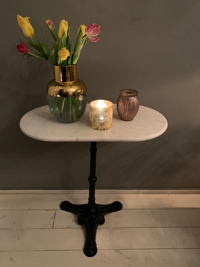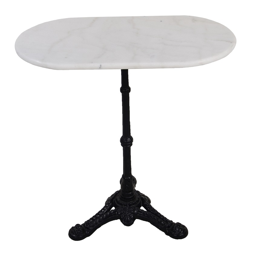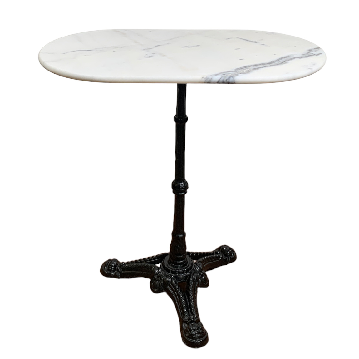 Bistrotafel marmer ovaal 70 x 40 cm gietijzer onderstel