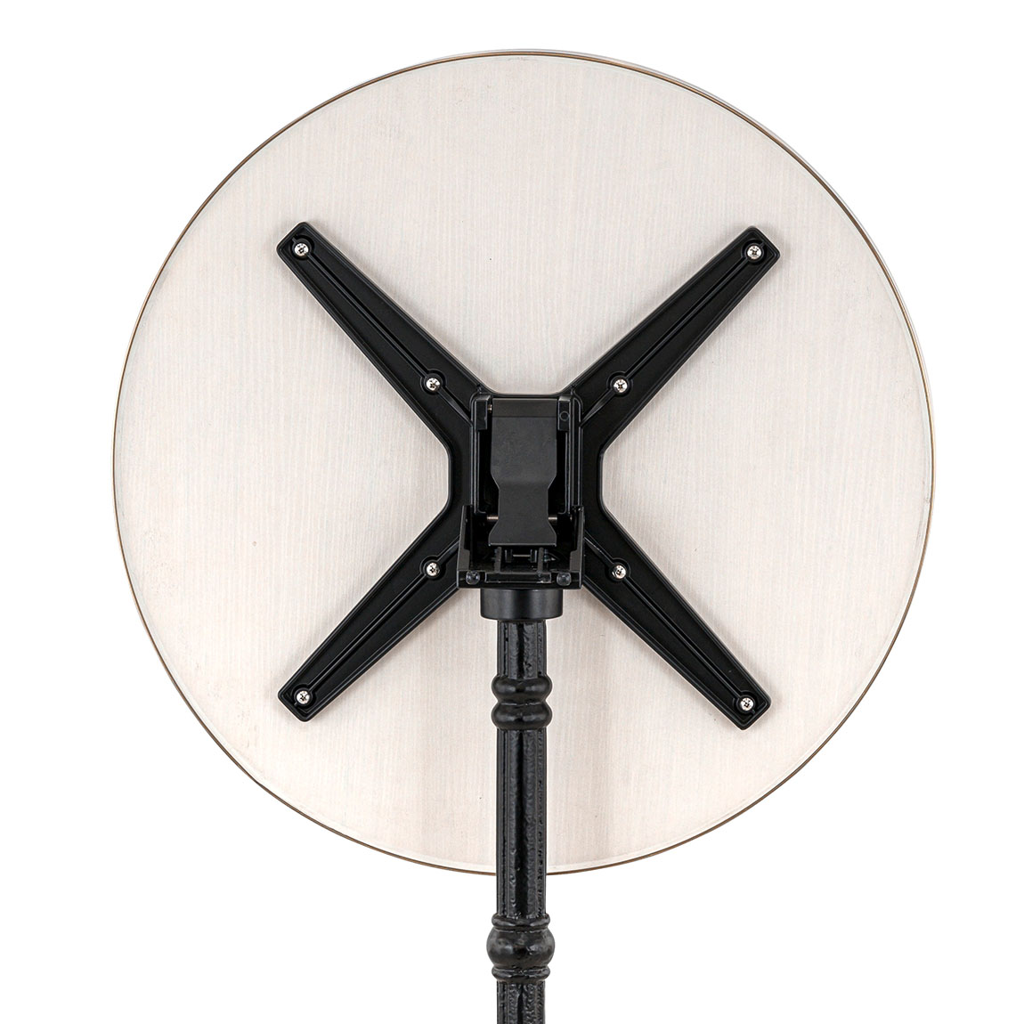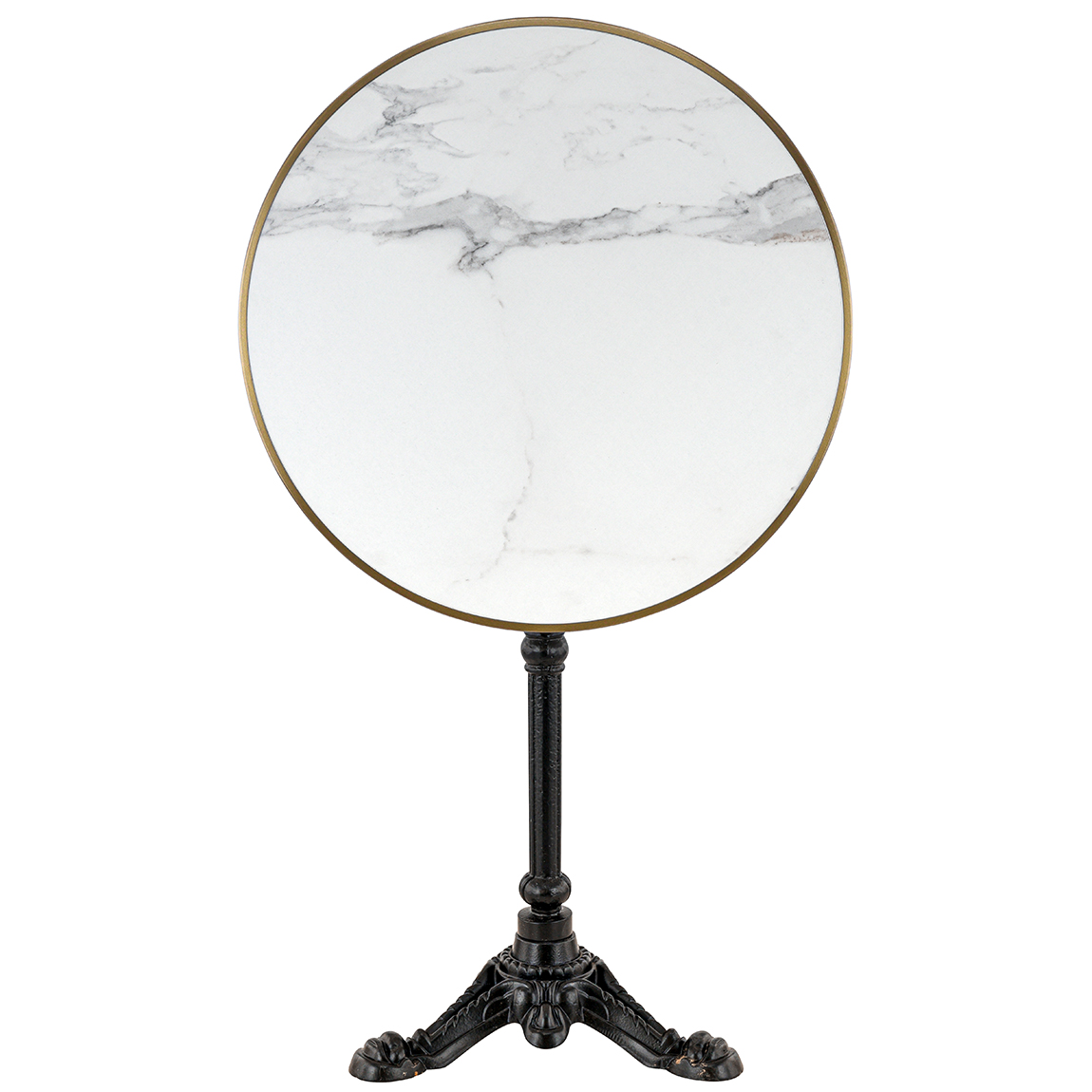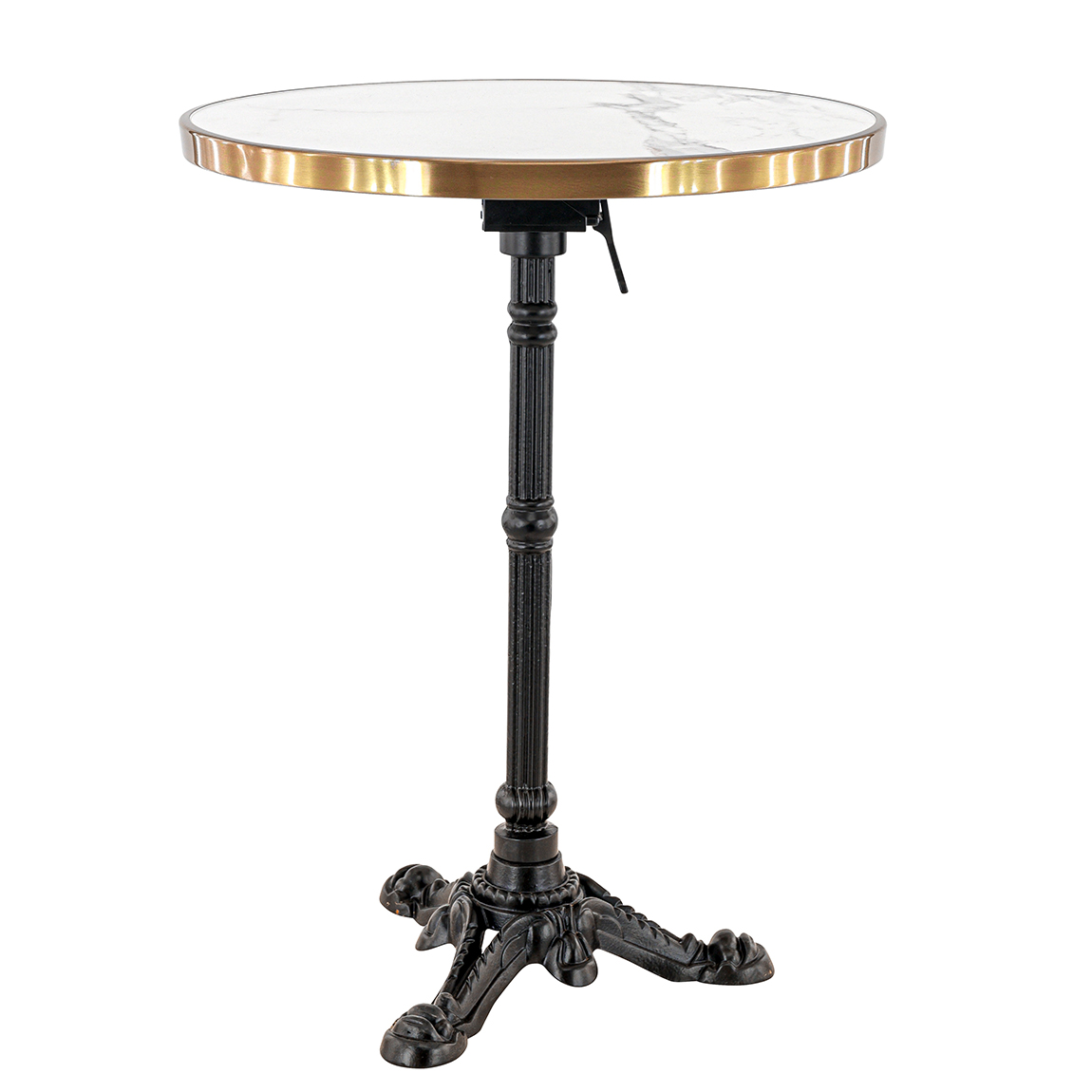 Deze ronde inklapbare bistrotafel is een uitstekende keuze voor wie op zoek is naar een combinatie van functionaliteit, duurzaamheid en elegantie. De bistrotafel heeft een gietijzeren tafelonderstel en marmerlook tafelblad. Het tafelblad is gemaakt van 5 mm HPL en 22 mm melamine multiplex en is voorzien van een 3 cm dikke gegalvaniseerde roestvrijstalen sierring. Het gietijzeren onderstel heeft een 3-teens voet en is voorzien van een vouwmechanisme. De verstelbare doppen zorgen ervoor dat de tafel stabiel staat.