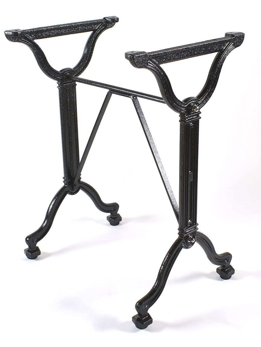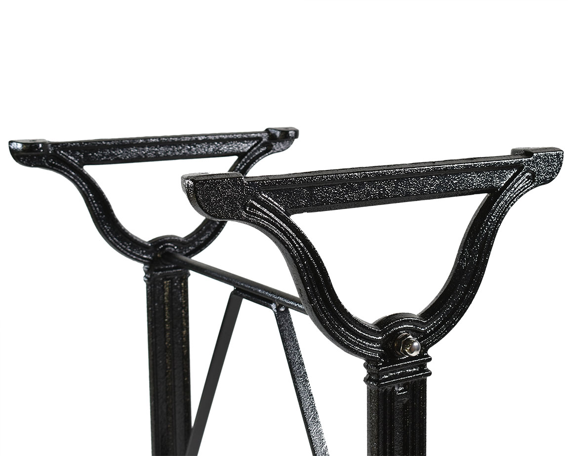 Gietijzer tafelonderstel model retro small. Dit onderstel is 71 cm hoog, 52 cm lang en 38 cm breed. Het onderstel is voorzien van steldoppen en is weerbestendig. Op het onderstel kan een rond, vierkant of rechthoekig tafelblad geplaatst worden. Dik klassieke gietijzeren tafelonderstel wordt veel gebruikt in de horeca en is geschikt voor zowel binnen als buiten gebruik.