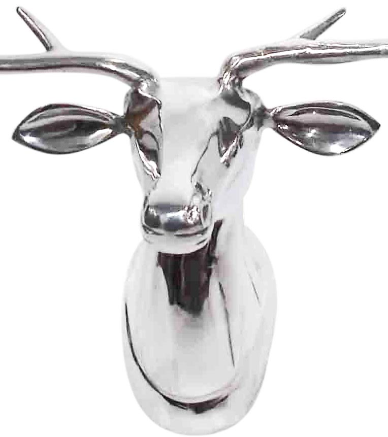 Robuuste hertenkop voor aan de muur. Deze mooie hert Sauerland is gemaakt van gepolijst aluminium en is 47 cm breed. De breedte van oor tot oor is 27 cm.