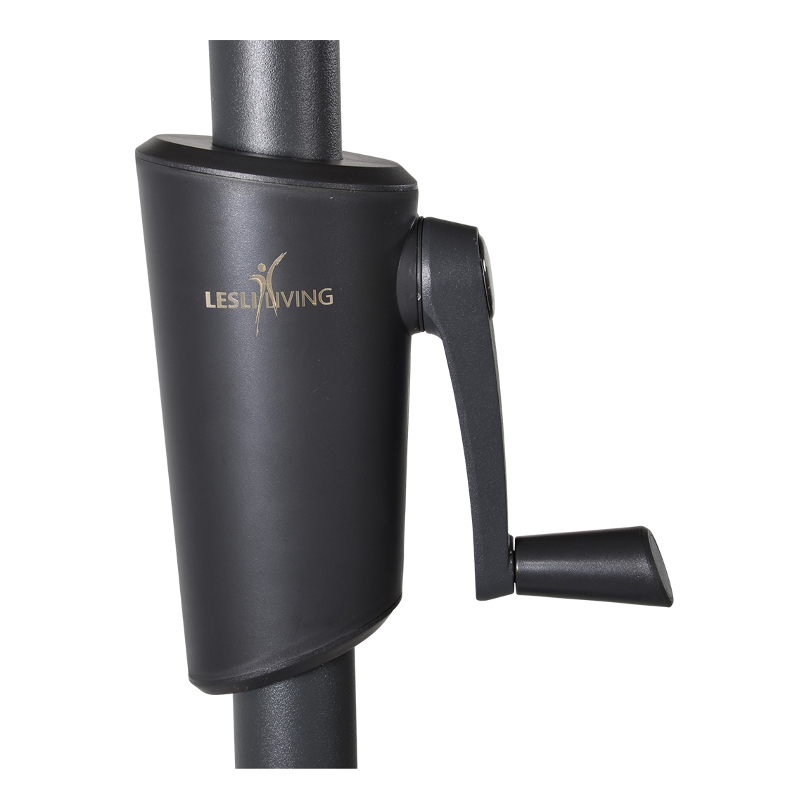 Parasol model Libra met molen en volan. Deze parasol heeft een diameter van 3, 5 meter en heeft een antraciet aluminium frame met ecru doek. Verder is deze parasol kantelbaar, heeft een veersysteem en 8 metalen baleinen.