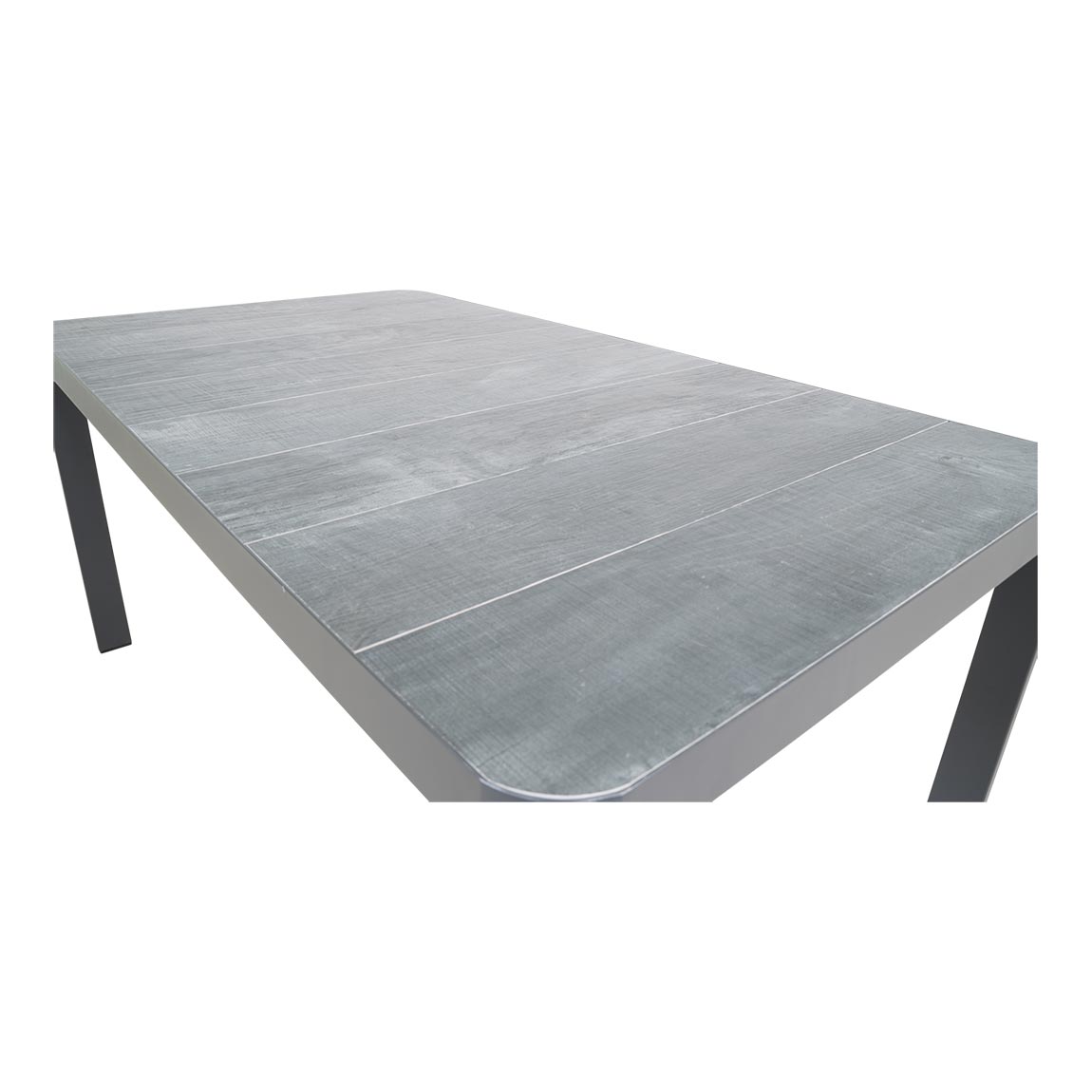 Tuintafel Castilla 2.0 Negro kleur antraciet. Deze rechthoekige tuintafel is 220 cm lang, 100 cm breed en is 74 cm hoog. Het frame is gemaakt van stevig aluminium. Het tafelblad is gemaakt van keramiek. De tuintafel is rond afgewerkt.