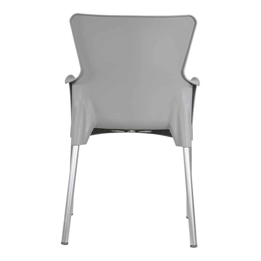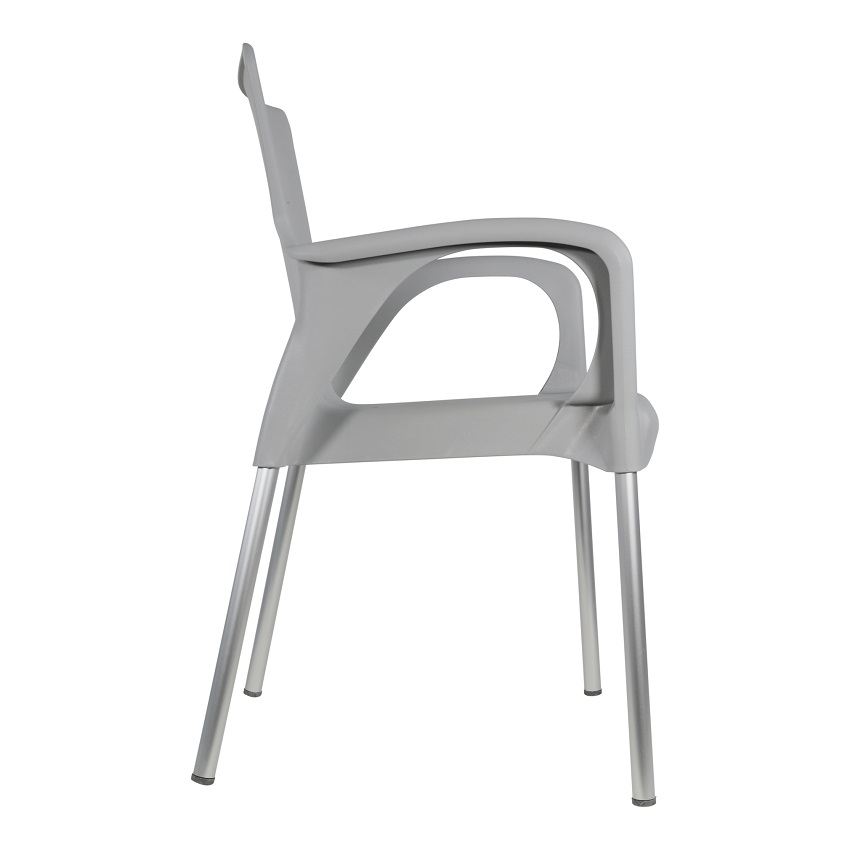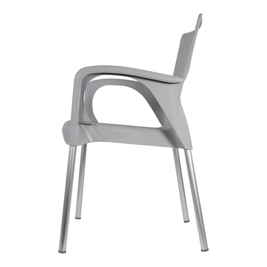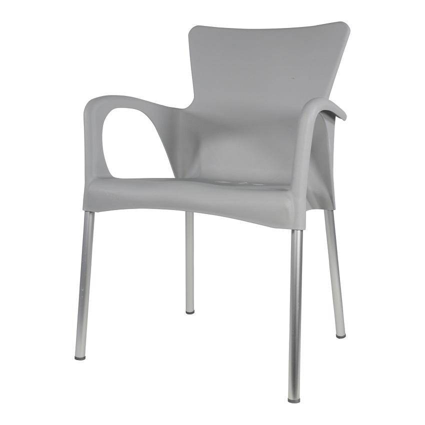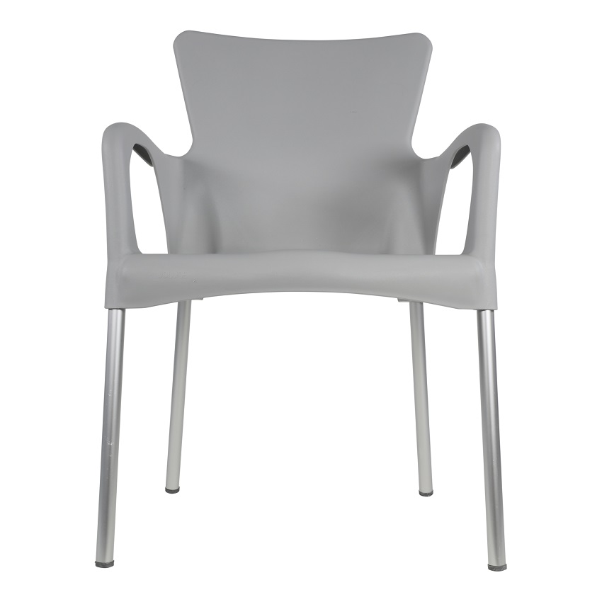 Kunststof stapelstoel met armleuning. Deze stapelstoelen zijn ideaal voor een kantine, het terras of in de tuin. De stoel is licht in gewicht waardoor het makkelijk te verplaatsen is. Doordat de stoelen stapelbaar zijn nemen ze weinig opslagruimte in beslag. De stoel is voorzien van armleuningen en heeft aluminium poten. De zithoogte is 45 cm en de stoel is 58 cm breed.
