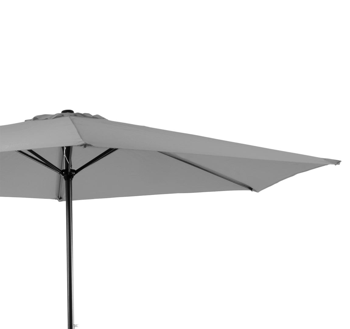 Aluminium parasol 3 meter. Ideaal om een koel plekje in uw tuin of op uw terras te creëren. De parasol is uitgerust met 6 metalen baleinen, dit voor extra stevigheid en is voorzien van een molen.
