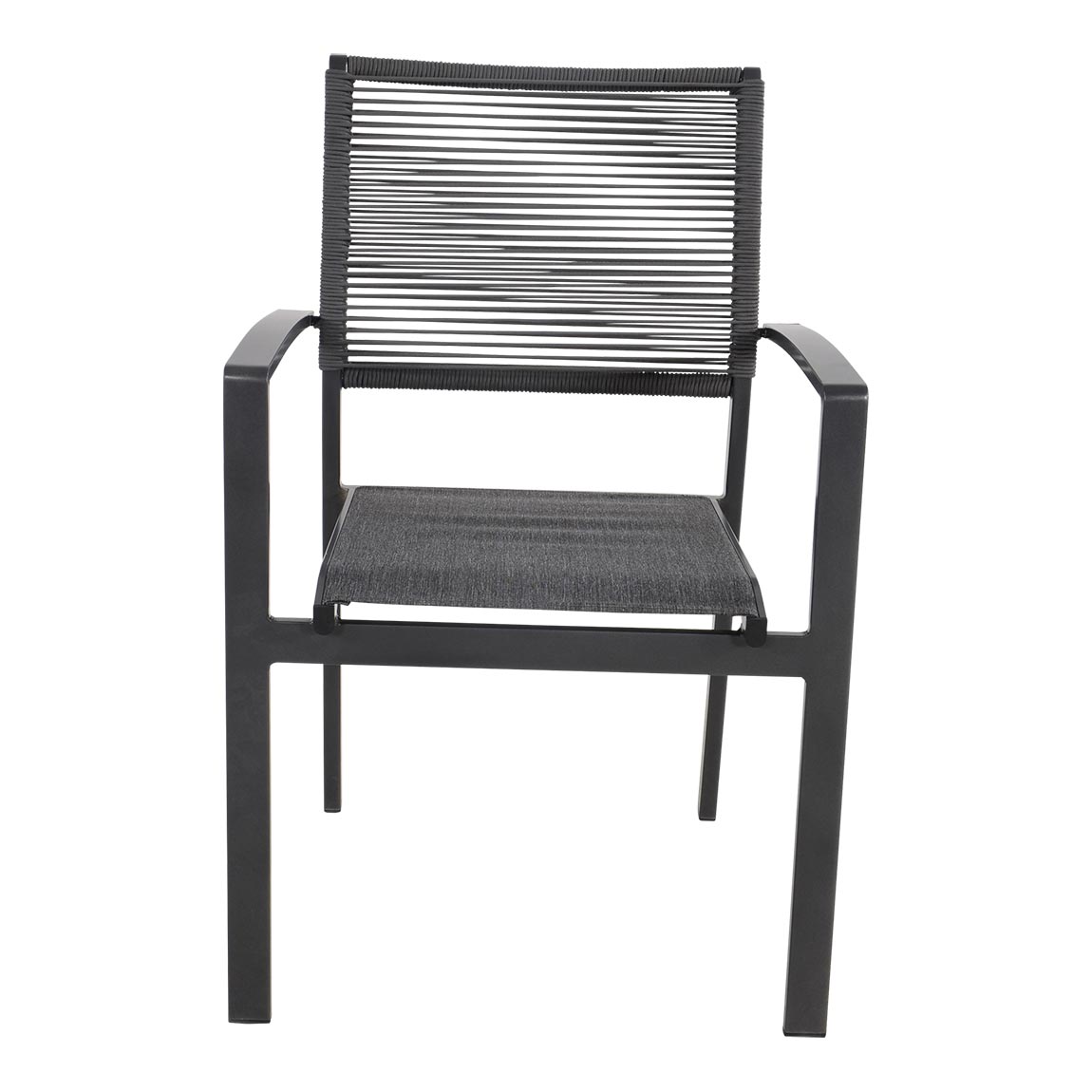 Mooi vormgegeven stapelbare tuinstoel. Deze stoel heeft een aluminium frame en rope rugleuning. Hierdoor is de tuinstoel licht in gewicht en makkelijk te verplaatsen. De zitting is gemaakt van textileen waardoor het prettig zitten is. De poten zijn voorzien van rubberen anit-slip doppen. Dit zorgt voor meer grip en stabiliteit op gladde vloeren. De Vito Rope stoel is weersbestendig en onderhoudsarm.