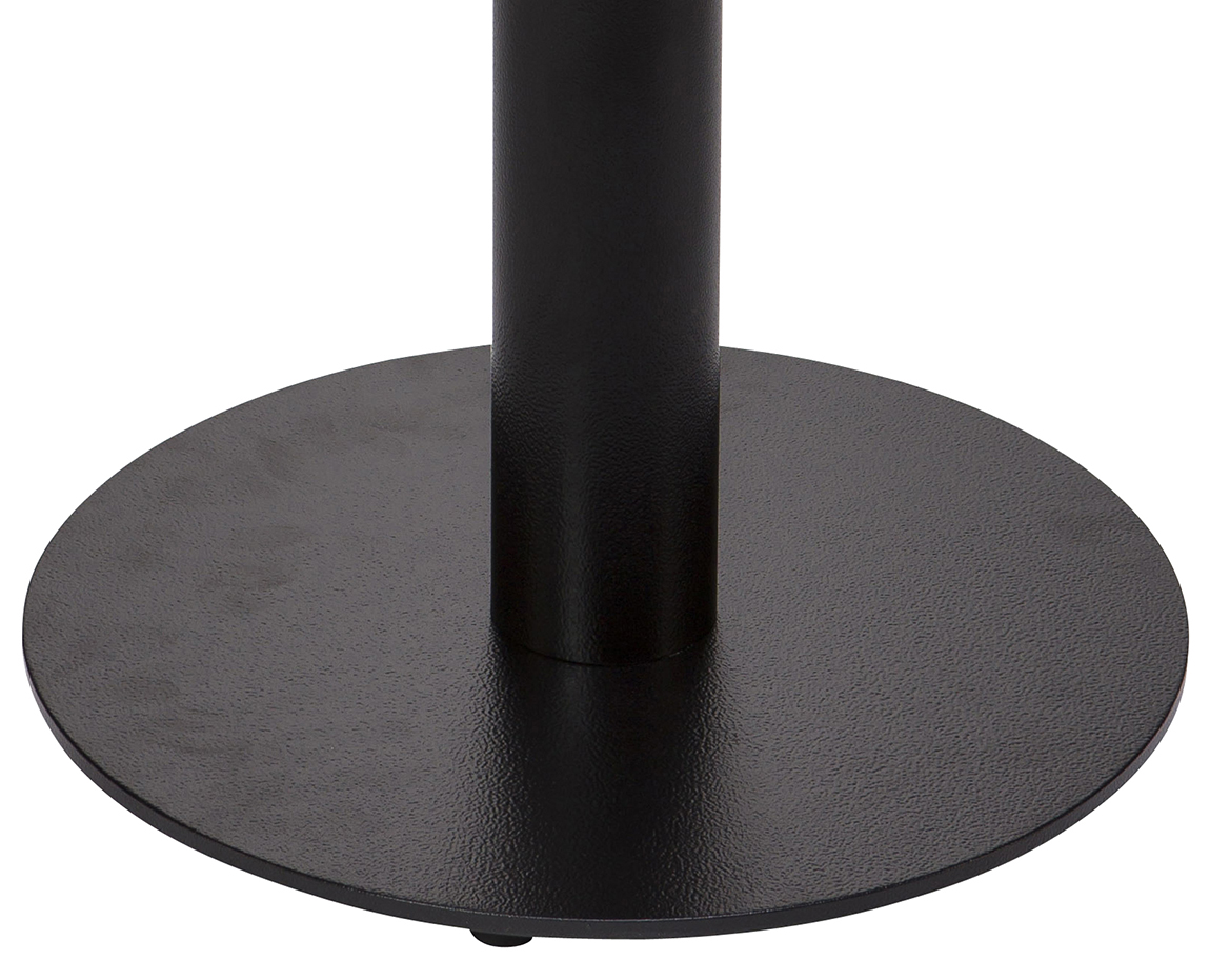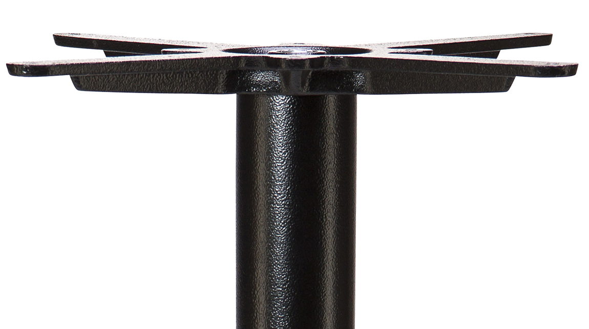 Statafelonderstel metaal met ronde voet. Dit onderstel heeft een ronde voet met een diameter van 40 cm en is voorzien van 5 steldoppen. De hoogte van dit onderstel is 108 cm. De ronde metalen plaat is 7 mm dik en de buisdiameter is 76 mm. Het onderstel is gepoedercoat waardoor de verflaag slijtvaster is geworden. De bovenkant van het onderstel is voorzien van een kruissjabloon waarop het tafelblad bevestigd kan worden. Geschikt voor indoor gebruik.