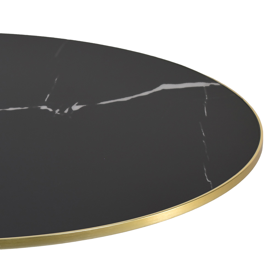 Tafelblad zwart marmerlook met gouden sierring rond 70 cm