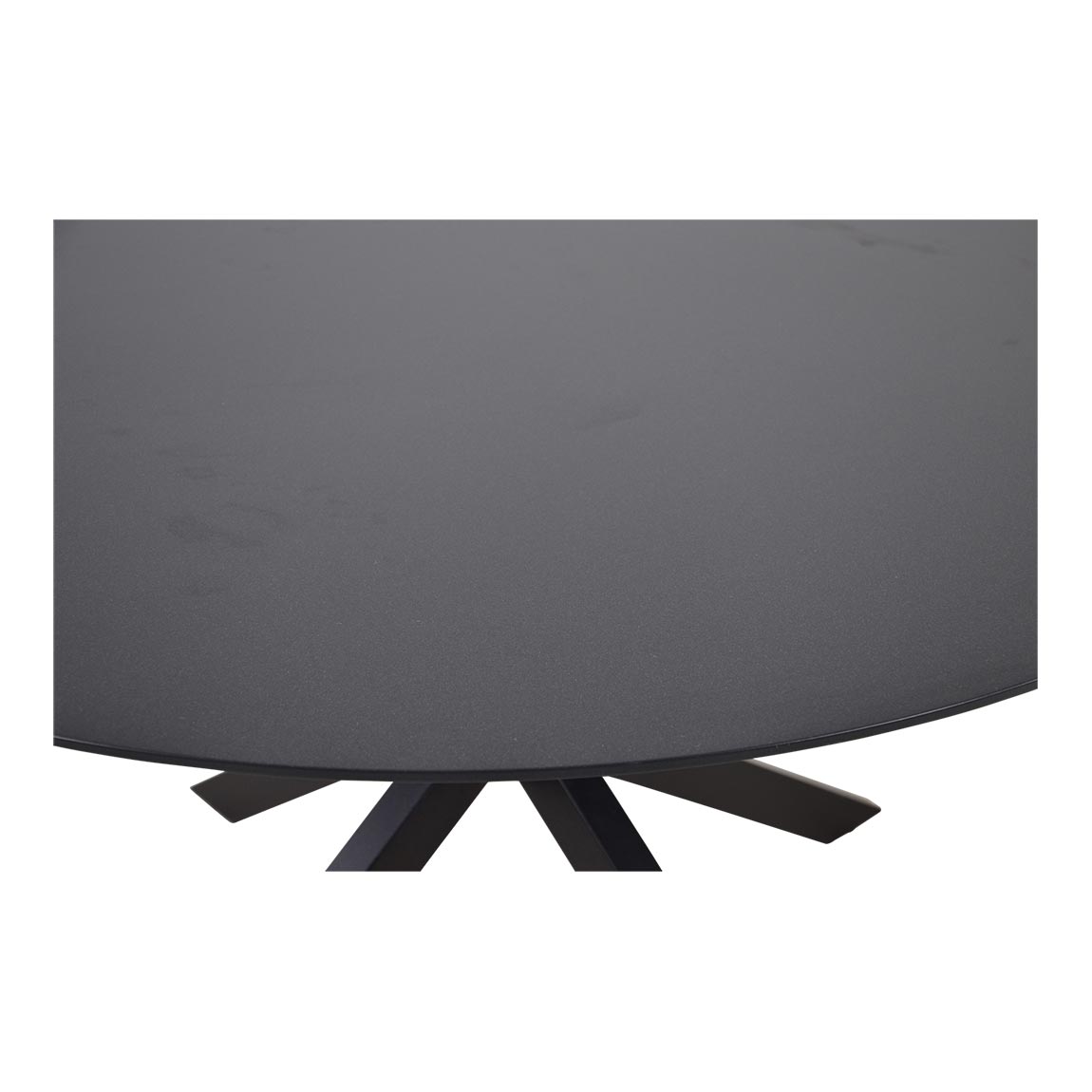Tuintafel Crest rond 120 cm met industrieel onderstel. Deze tafel heeft een moderne uitstraling met een industriële onderstel. Het tafelblad is gemaakt van 5 mm gecoat glas en heeft een diameter van 120 cm. Het onderstel is gemaakt van aluminium. De totale tafelhoogte is 71 cm. Door het gebruik van deze materialen is de tafel onderhoud vriendelijk.