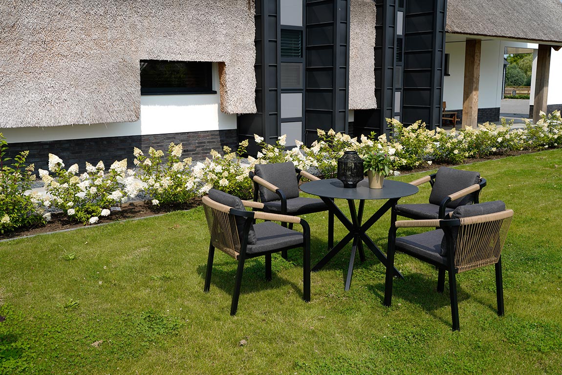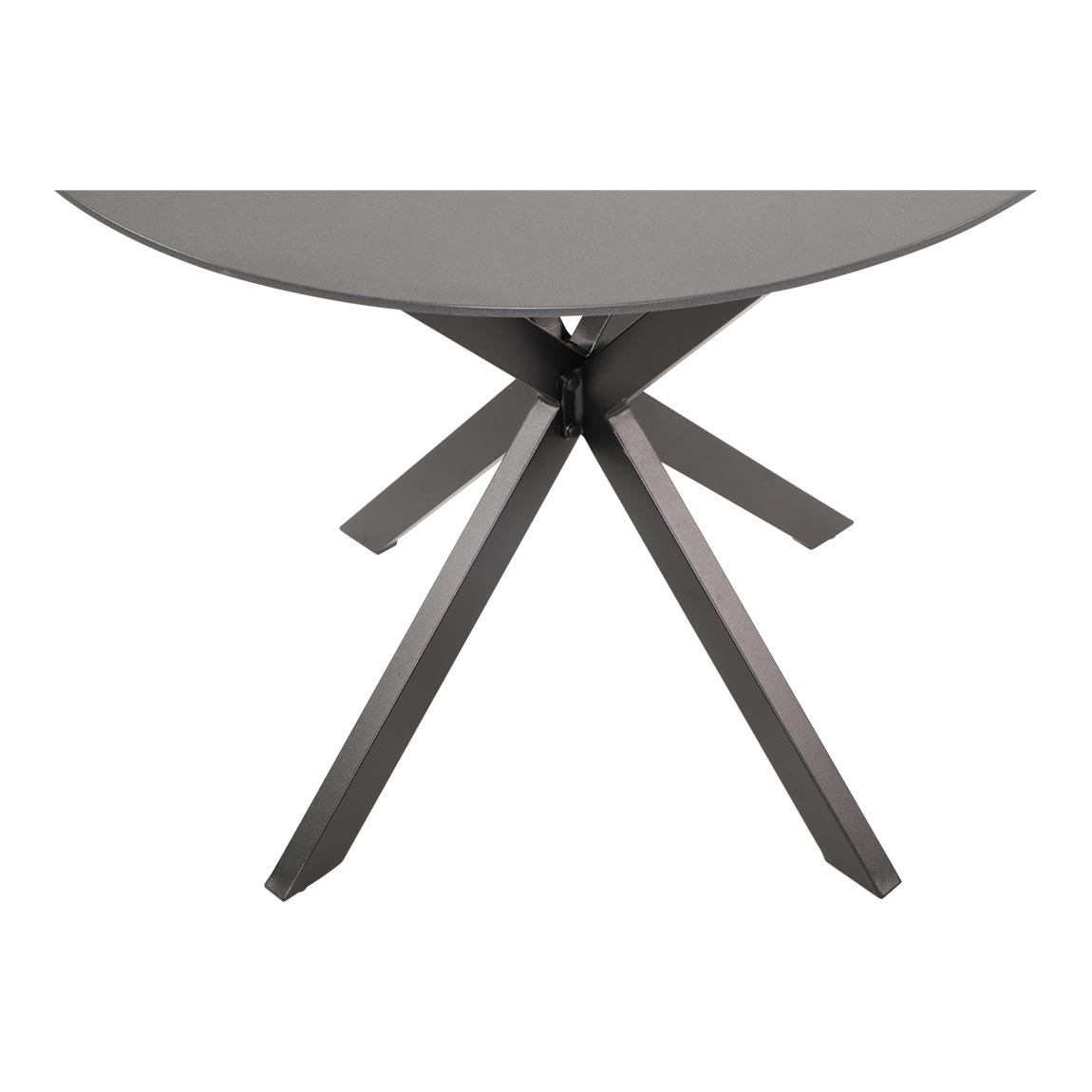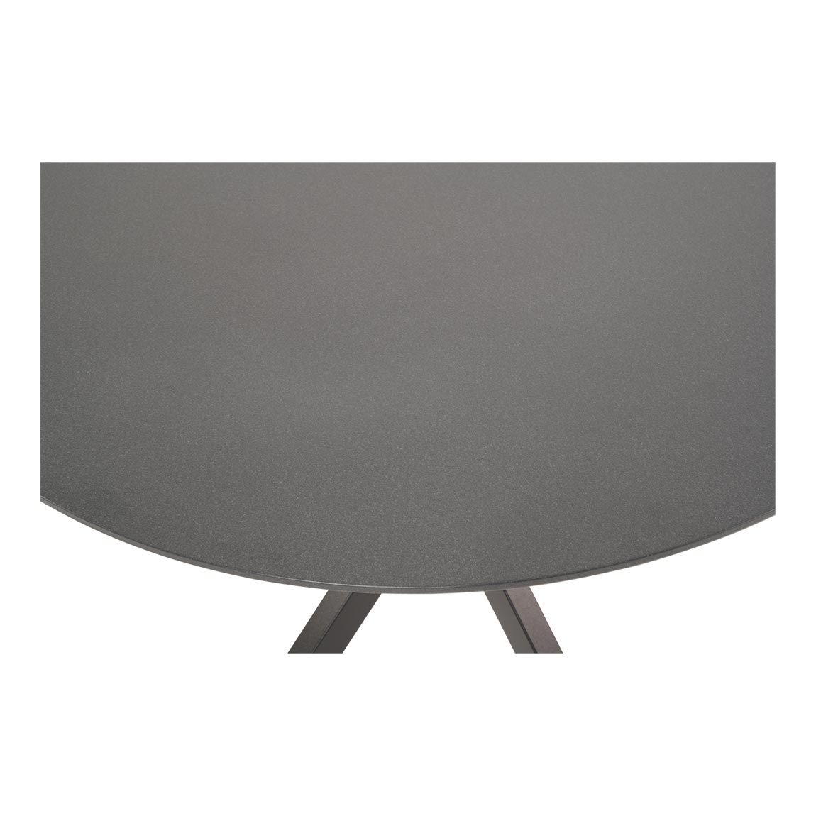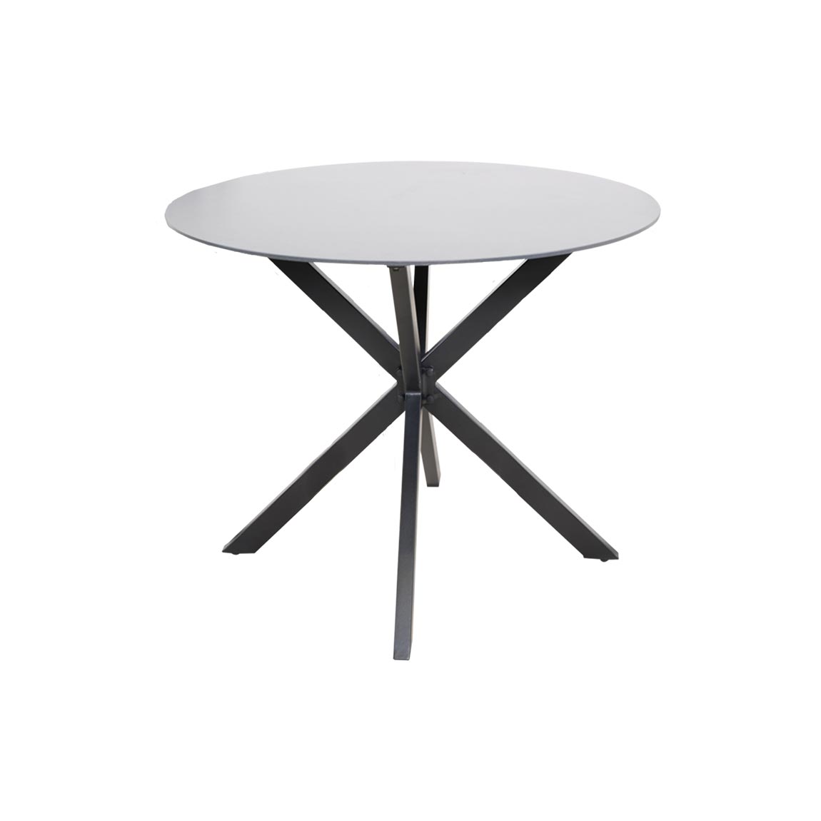 Tuintafel model Crest met industrieel onderstel. Deze tuintafel heeft een moderne uitstraling maar is voorzien van een industriële tafelonderstel. Het tafelblad is gemaakt van 5 mm gecoat glas en heeft een diameter van 90 cm. Het tafelonderstel is gemaakt van aluminium. De totale tafelhoogte is 71 cm. Door het gebruik van deze materialen is de tafel onderhoud vriendelijk.