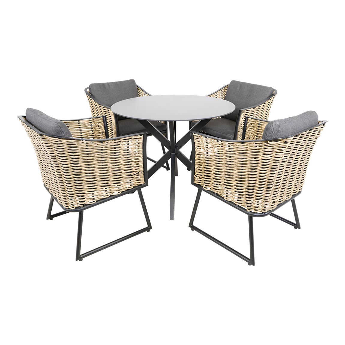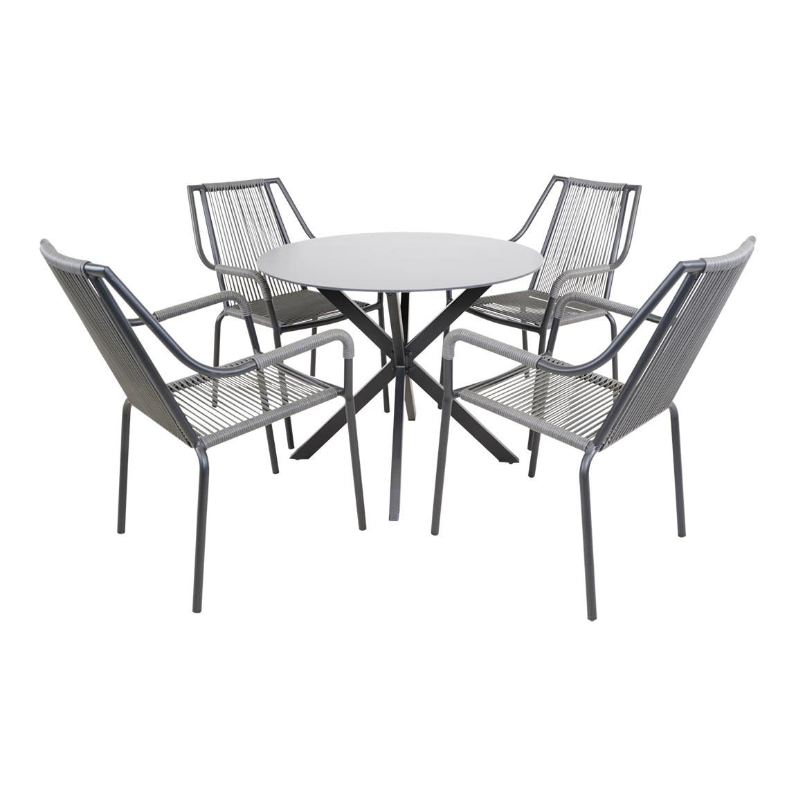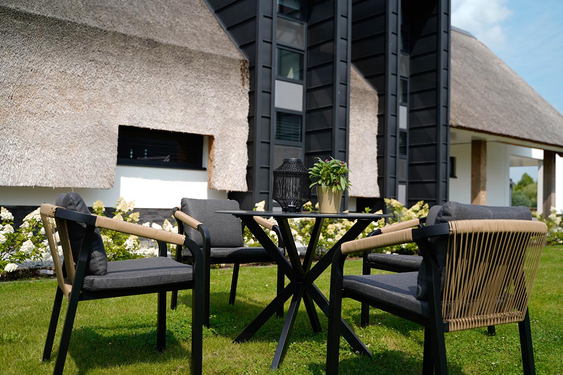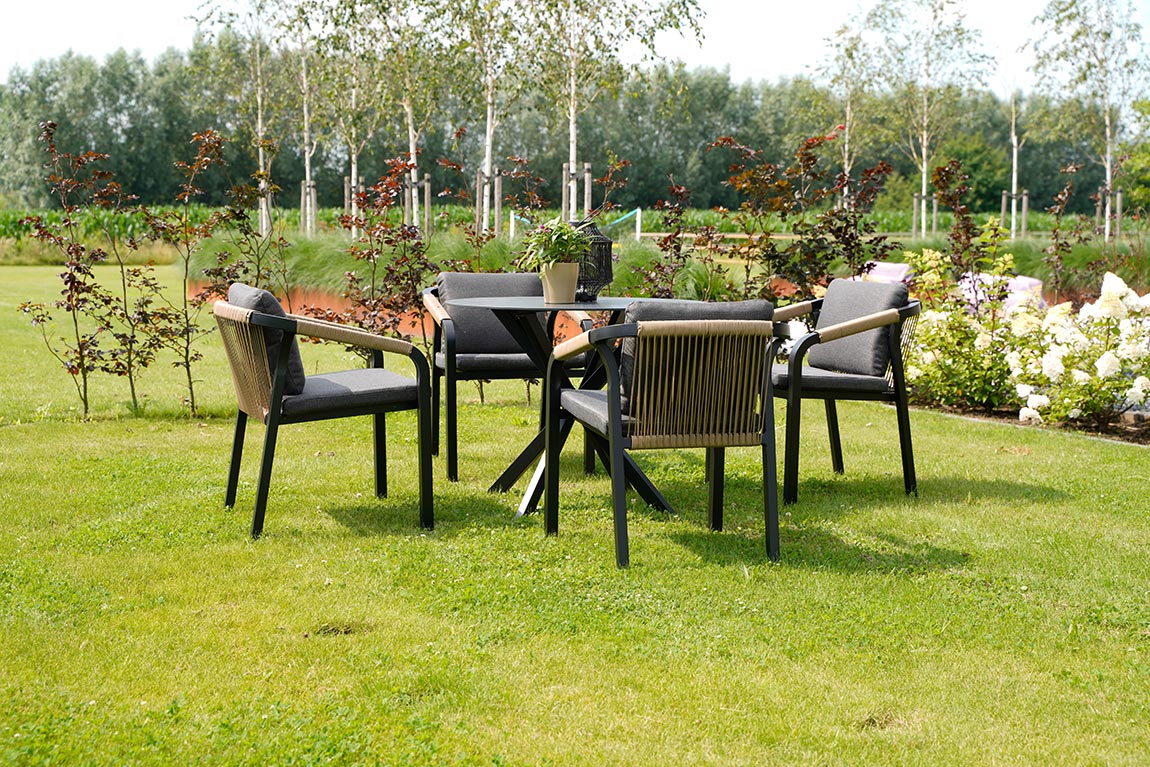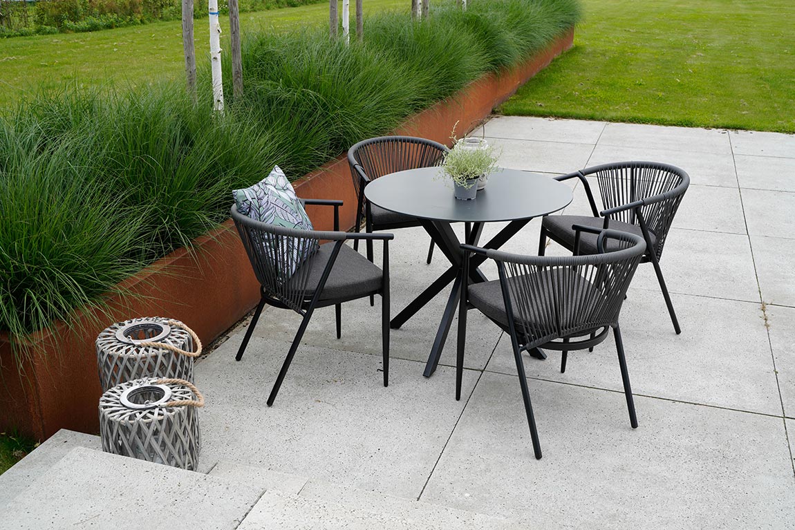 Tuintafel model Crest met industrieel onderstel. Deze tuintafel heeft een moderne uitstraling maar is voorzien van een industriële tafelonderstel. Het tafelblad is gemaakt van 5 mm gecoat glas en heeft een diameter van 90 cm. Het tafelonderstel is gemaakt van aluminium. De totale tafelhoogte is 71 cm. Door het gebruik van deze materialen is de tafel onderhoud vriendelijk.